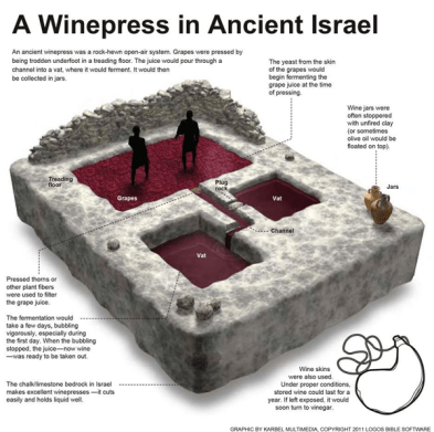 This eventual event is likened to a winepress. The image on the right is how ancient Israel would make wine (don’t worry about reading the words in the image). They would fill the largest reservoir with grapes, step into the reservoir, and stomp on the grapes as the juices would flow into the lower reservoir. This is how Revelation describes God’s coming wrath against the wicked—against all unbelievers. Yes, our amazing God is loving, merciful, and graceful, but He is also just, holy, and wrathful. Yes, Jesus is our God, but He is also King; and as our King, He will cast His enemies into the winepress of God’s wrath, whose wrath will crush them. Jesus is King, not a conscientious objecting fairy.