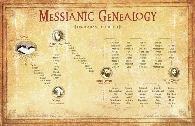 Here is a helpful graphic of Jesus’ genealogy from Answers in Genesis: