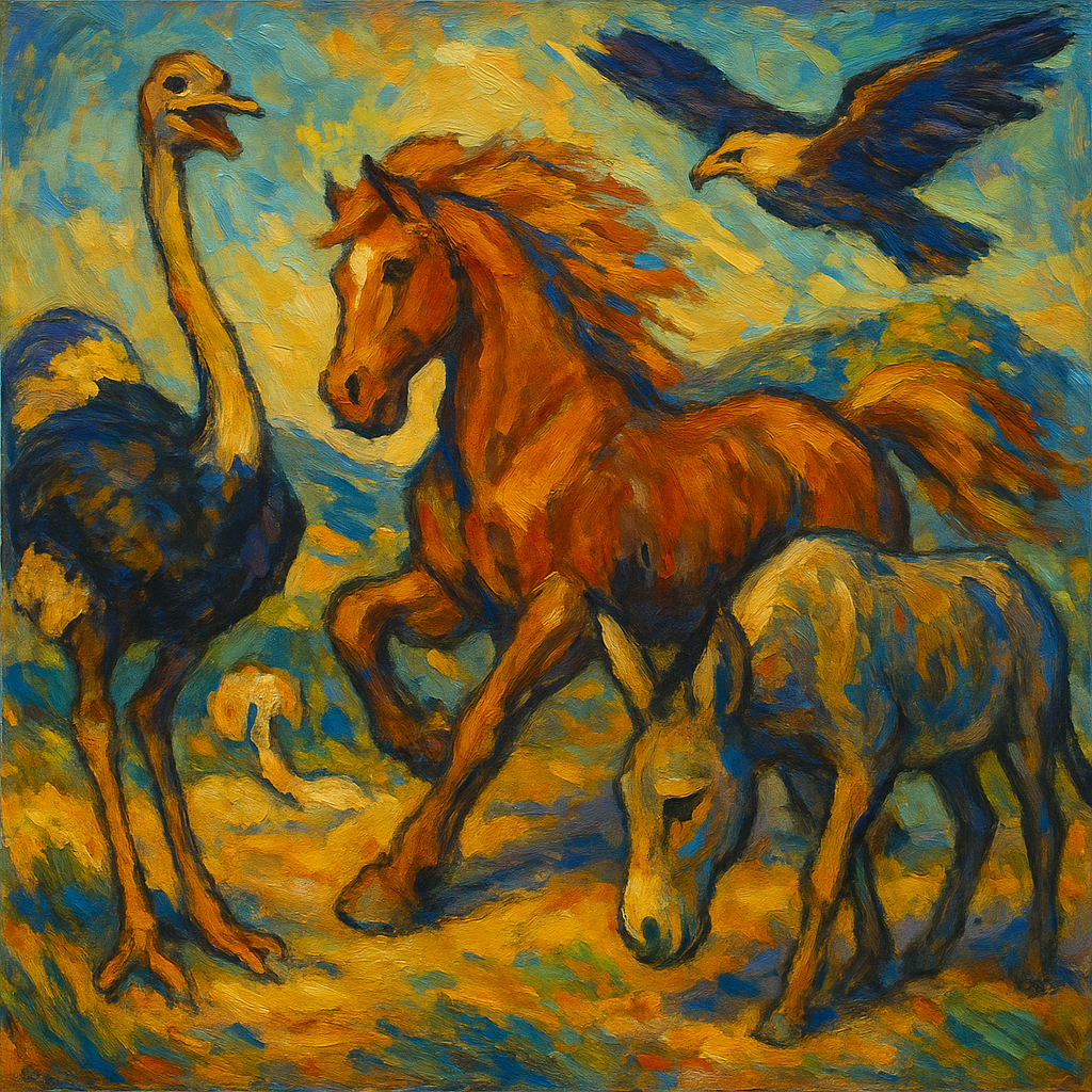 The ostrich is described with a bit of humor (vv. 13-17). She lacks wisdom and understanding. She leaves her eggs in the dust, forgets they may be crushed, yet runs faster than a horse. God delights even in the absurdities of creation. The point is not mockery; it’s a celebration of a wisdom that is not ours. God’s design accommodates creatures who are seemingly foolish yet are provided for and sustained. Even the “foolish” flourish under His hand.